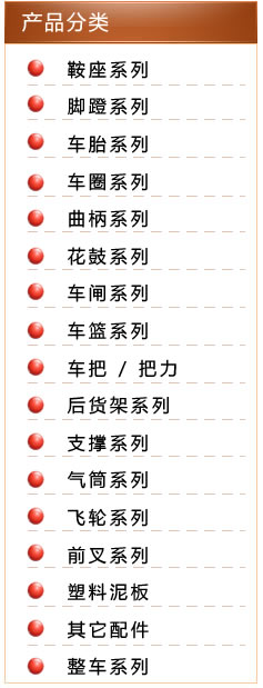 1990年公司开始经营,2000年投产经营各种自行车零件,产品包括自行车、童车、电动车等鞍座系列、脚蹬、前后轴、中轴、飞轮、链轮曲柄、钢珠、曲柄销、打气筒、闸线等一百六十多个品种。