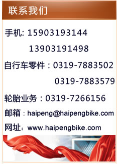 河北海鹏车业有限公司,1990年成立于中国自行车零件城,其前身为“河北省平乡县海鹏自行车零件有限公司”。公司地处邢清公路中段,近北京、天津、新港港口,为自行车及自行车零部件集中之地,是您理想的选择对象。